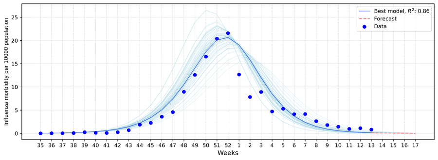 Fig. 13. Results of influenza incidence modeling, season 2025/26.