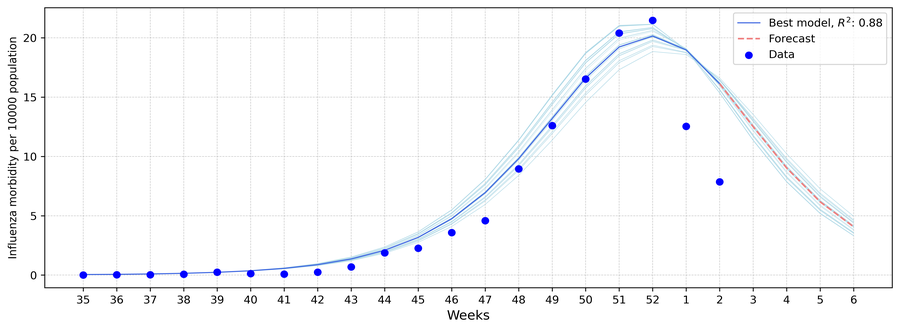 Fig. 13. Results of influenza incidence modeling, season 2025/26.